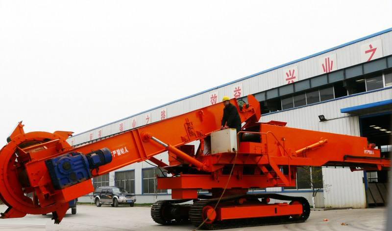 利用斗輪連續(xù)取料,用機(jī)上的帶式輸送機(jī)連續(xù)堆料的有軌式裝卸機(jī)械。它是散狀物料(散料)儲(chǔ)料場(chǎng)內(nèi)的專(zhuān)用機(jī)械,是在斗輪挖掘機(jī)的基礎(chǔ)上演變而來(lái)的,可與卸車(chē)(船)機(jī)、帶式輸送機(jī)、裝船(車(chē))機(jī)組成儲(chǔ)料場(chǎng)運(yùn)輸機(jī)械化系統(tǒng),生產(chǎn)能力每小時(shí)可達(dá)1千立方。斗輪堆取料機(jī)的作業(yè)有很強(qiáng)的規(guī)律性,易實(shí)現(xiàn)自動(dòng)化。控制方式有手動(dòng)、半自動(dòng)和自動(dòng)等。