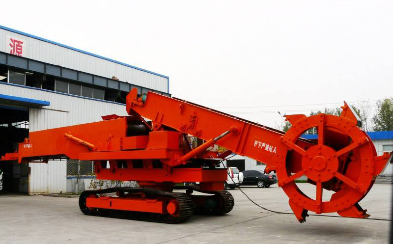 斗輪取料機(jī),是指一種用于大型干散貨堆場的既能堆料又能取料的連續(xù)輸送的高效裝卸機(jī)械。由可俯仰和水平擺動(dòng)的膠帶輸送臂及其前端的斗輪、機(jī)架、運(yùn)行機(jī)構(gòu)組成,膠帶可雙向運(yùn)行,取料時(shí)由斗輪取料經(jīng)輸送臂送出,堆料時(shí)則由主輸送機(jī)運(yùn)來的貨物經(jīng)由輸送臂投向堆場。